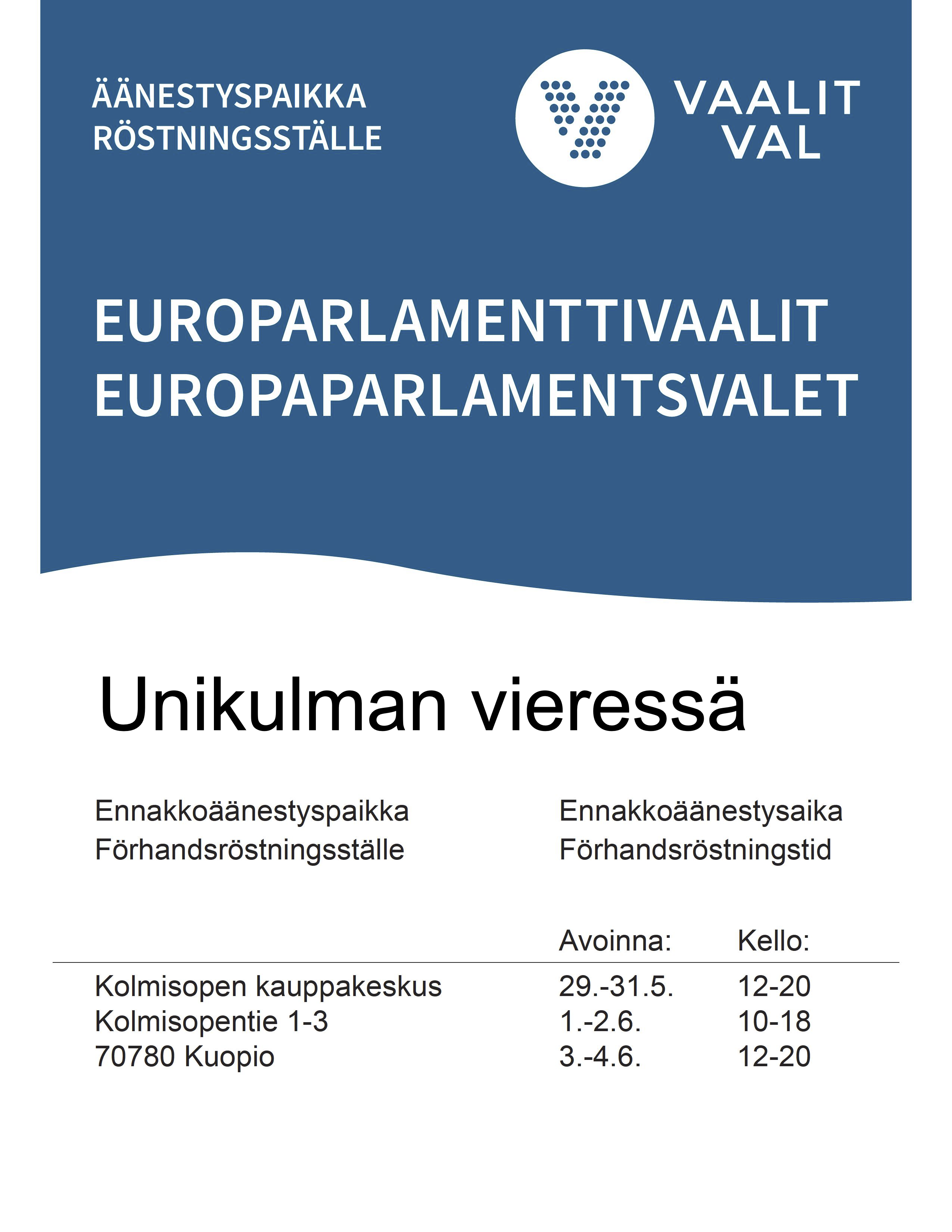Europarlamenttivaalien ennakkoäänestyspiste sijaitsee Unikulman viereisessä liiketilassa. Äänestyspiste on avoinna seuraavasti: