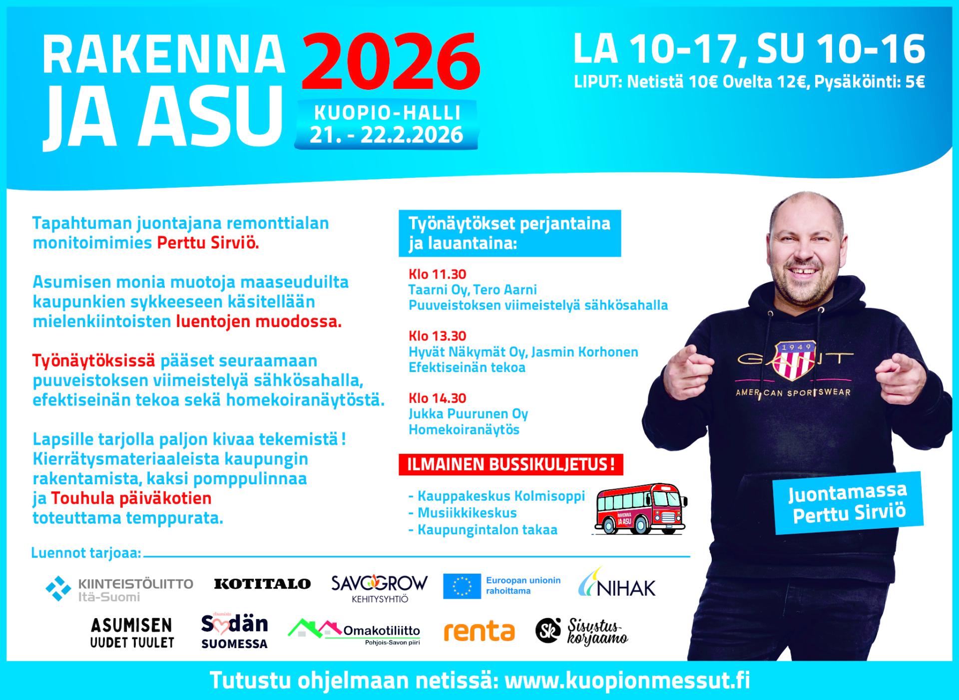 Rakenna ja Asu-messut on kaikenikäisille suunnattu, Itä-Suomen vanhin ja suurin rakennus- ja sisustusalan ammatti- ja yleisötapahtuma. Tule sinäkin inspiroitumaan ja kokemaan elämyksiä!